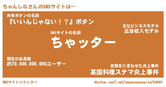 | 胡散臭い通販商品みたいなあだ名 | 『億万長者になれる水晶球…その名も「ちゃんしな」』 |