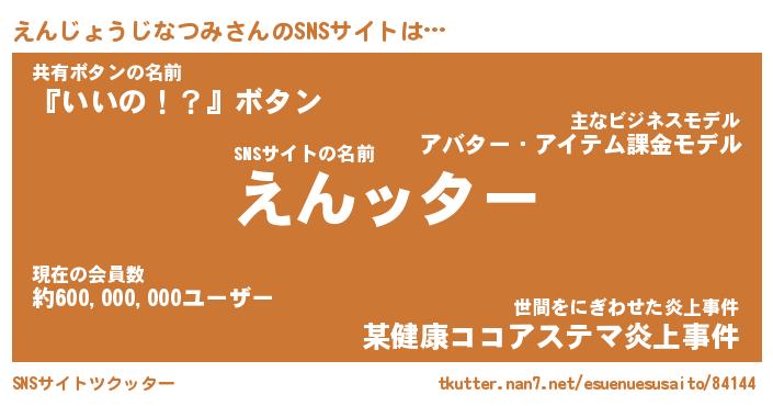 | 胡散臭い通販商品みたいなあだ名 | 『億万長者になれるブレスレット…その名も「えんじょうじなつみ」』 |