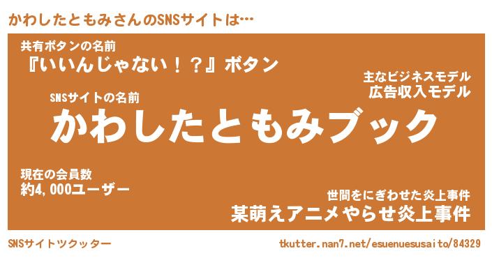 | 男性向けラノベタイトル風あだ名 | 『カワシタトモミアートオンライン』 |
