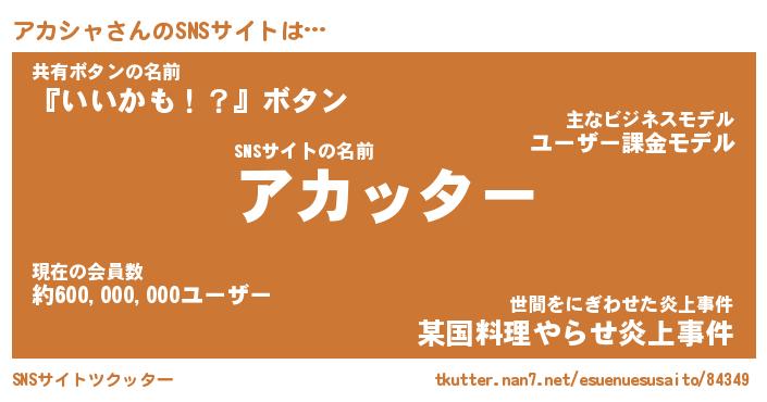 | 意味不明あだ名 | 『ペロリンアカシャ』『永久保存アカシャ』 |