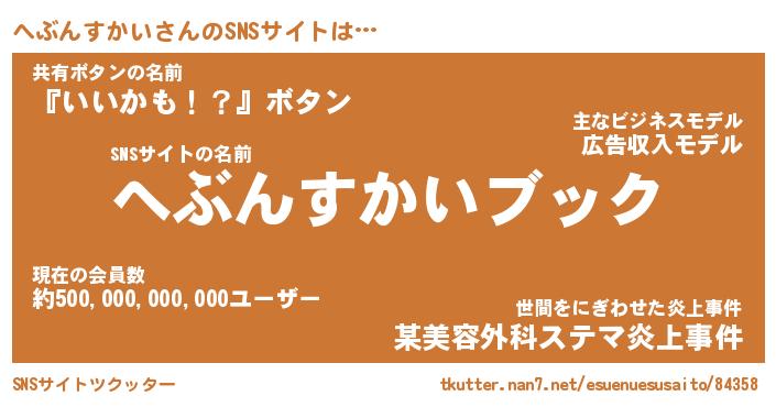 | ヘコむあだ名 | 『へぶもー』『酢こんぶ』『へぶ太郎』 |