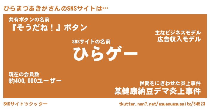 | 伝説のあだ名 | 『伝説のスナイパーひらまつあきか』 |