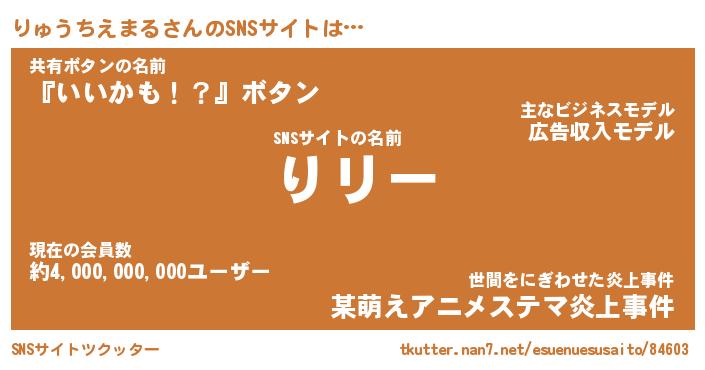 | 肩書あだ名 | 『りゅうちえまる御曹司』 |