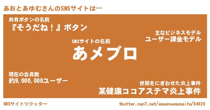 | ツイッター | あおとあゆむさんのツイッターID『katatsumuri_nyan』 |
