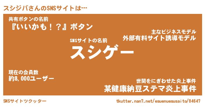 | 男性向けラノベタイトル風あだ名 | 『スシジバの憂鬱』 |