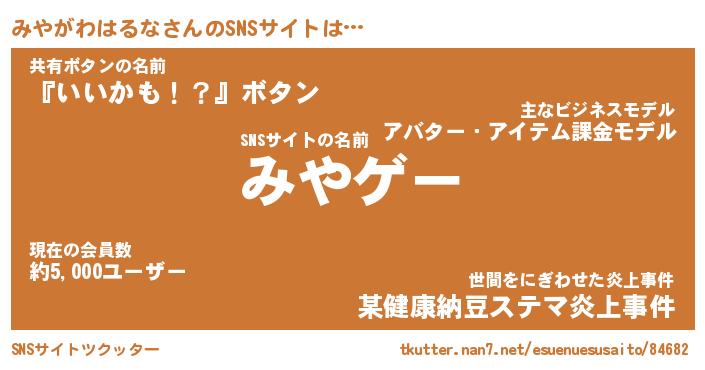 | ヘコむあだ名 | 『みやにゅー』『レバニラ』『みやお』 |