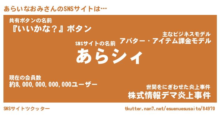 | 胡散臭い通販商品みたいなあだ名 | 『必ず成功するブレスレット…その名も「あらいなおみ」』 |