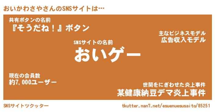 | 胡散臭い通販商品みたいなあだ名 | 『必ず成功するブレスレット…その名も「おいかわさや」』 |