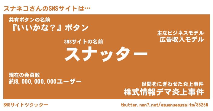 | ヘコむあだ名 | 『スナにー』『なまこ酢』『スナお』 |