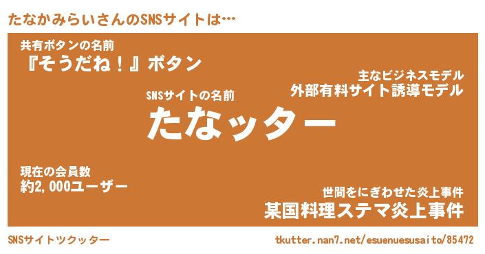 | ヘコむあだ名 | 『たなっふぃ~』『酢こんぶ』 |