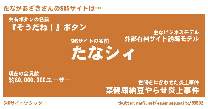 | ヘコむあだ名 | 『たなもー』『つくし』『たなっ子』 |