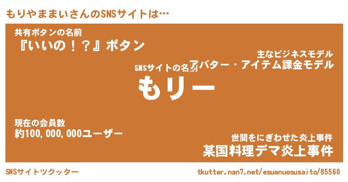 | 肩書あだ名 | 『もりやままいCEO』『もりやままい大統領』 |