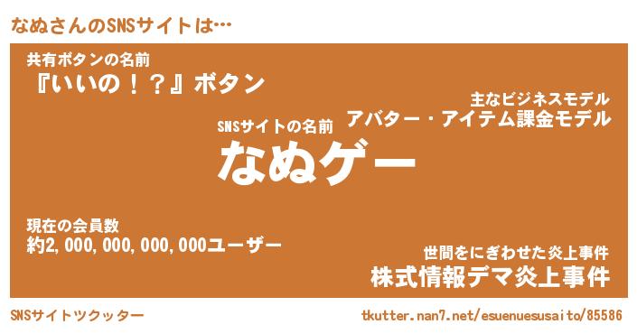 | ファンタジー風あだ名 | 『ナヌフェル』『エターナルナヌー』 |