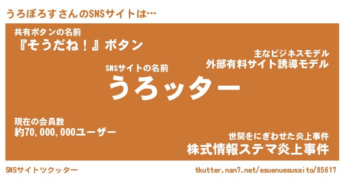 | 胡散臭い通販商品みたいなあだ名 | 『億万長者になれる霊験あらたかなお札…その名も「うろぼろす」』 |