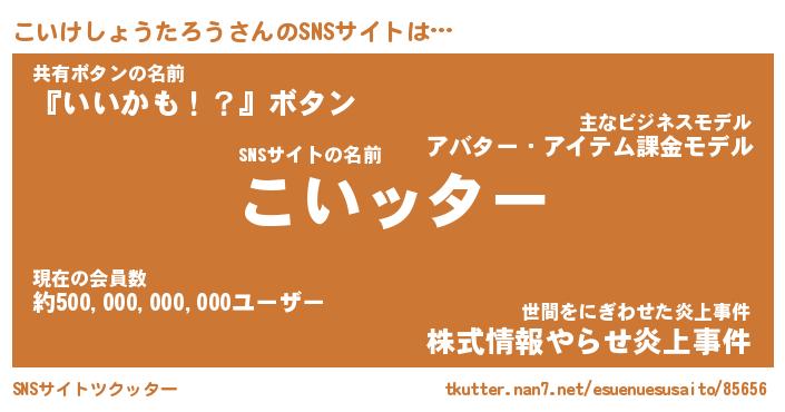 | 肩書あだ名 | 『こいけしょうたろう御曹司』 |