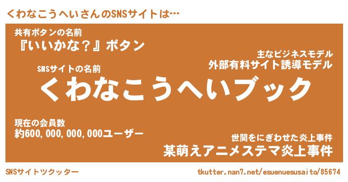 | 胡散臭い通販商品みたいなあだ名 | 『億万長者になれるブレスレット…その名も「くわなこうへい」』 |
