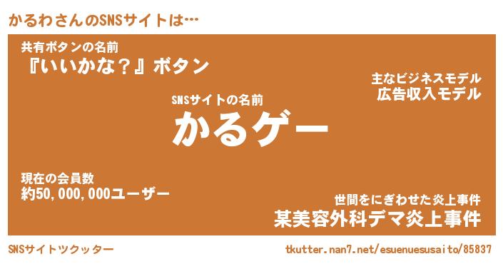 | 意味不明あだ名 | 『ペロリンかるわ』『かるわフォーエバー』 |