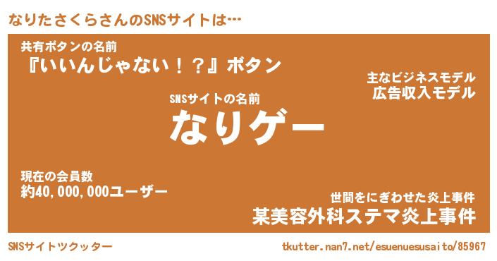 | 男性向けラノベタイトル風あだ名 | 『なりたさくらの憂鬱』 |