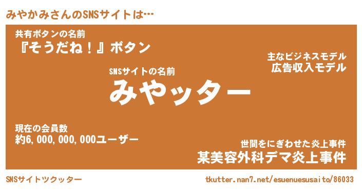 | ヘコむあだ名 | 『みやにー』『牛乳』『みやを』 |