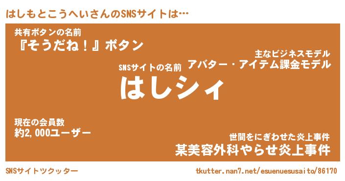 | 胡散臭い通販商品みたいなあだ名 | 『必ず成功するブレスレット…その名も「はしもとこうへい」』 |