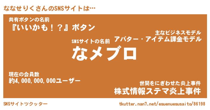 | ヘコむあだ名 | 『ななもー』『なまこ酢』『ななを』 |