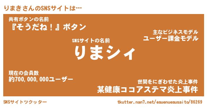 | ヘコむあだ名 | 『りまにー』『豆乳』『りまを』 |
