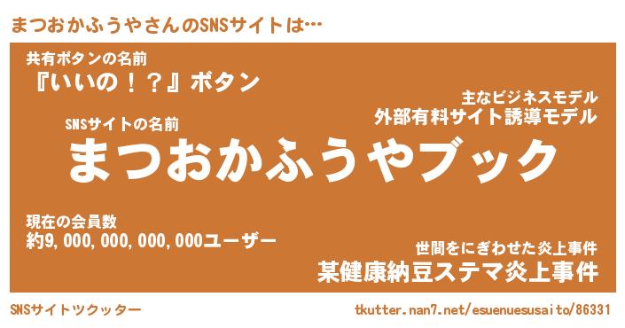 | 胡散臭い通販商品みたいなあだ名 | 『億万長者になれる霊験あらたかなお札…その名も「まつおかふうや」』 |
