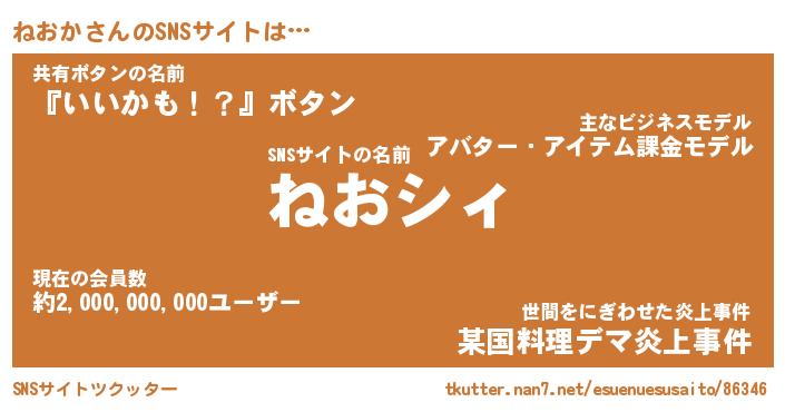 | ヘコむあだ名 | 『ねおにゅー』『なまこ酢』 |