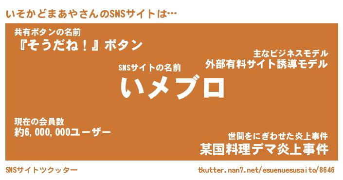 | 胡散臭い通販商品みたいなあだ名 | 『モテモテ間違いなし水晶球…その名も「いそかどまあや」』 |