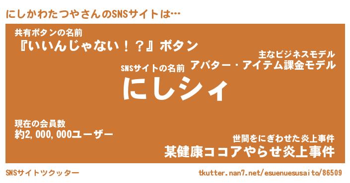 | 肩書あだ名 | 『にしかわたつやCEO』 |