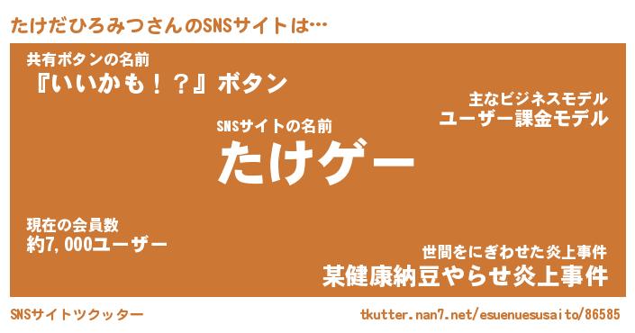 | ヘコむあだ名 | 『たけにー』『豆乳』『たけっぺ』 |
