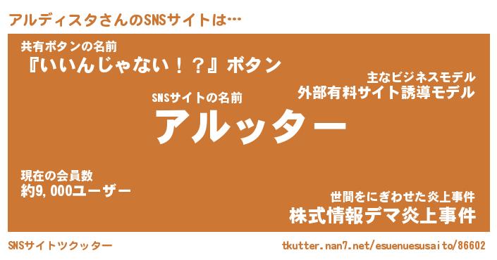 | 胡散臭い通販商品みたいなあだ名 | 『億万長者になれるブレスレット…その名も「アルディスタ」』 |