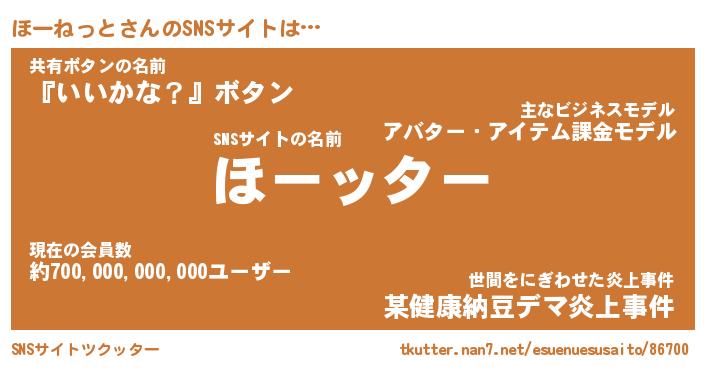 | 肩書あだ名 | 『ほーねっと社長』『ほーねっと国家主席』 |