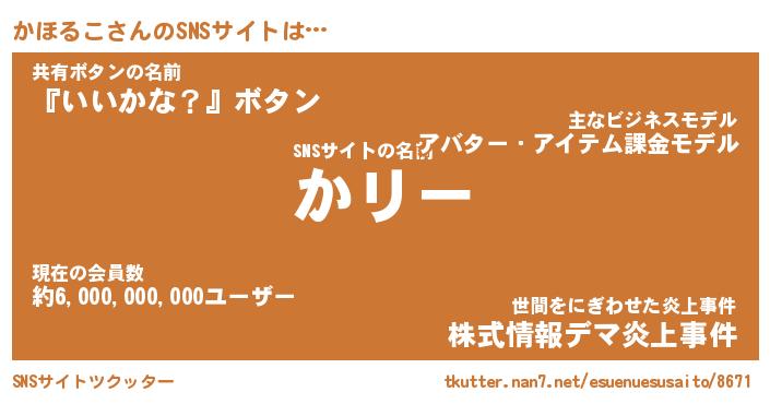 | 意味不明あだ名 | 『ペロリンかほるこ』『永久保存かほるこ』 |