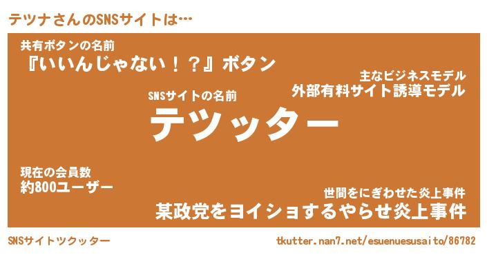 | 肩書あだ名 | 『テツナ社長』『テツナ大統領』 |