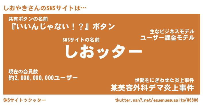 | 胡散臭い通販商品みたいなあだ名 | 『億万長者になれる水晶球…その名も「しおやき」』 |