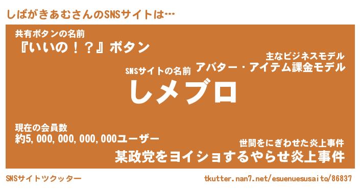 | 伝説のあだ名 | 『不死鳥のスナイパーしばがきあむ』 |
