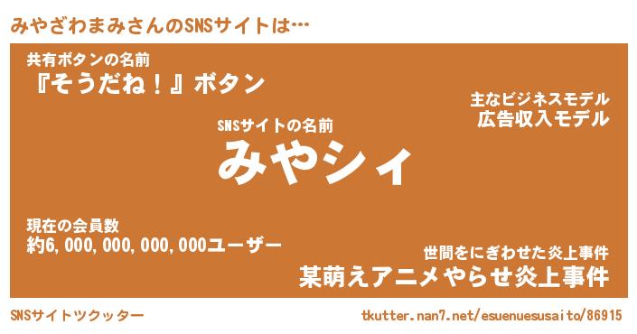 | 肩書あだ名 | 『みやざわまみ御曹司』 |