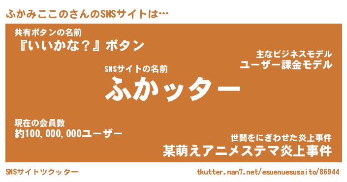 | 胡散臭い通販商品みたいなあだ名 | 『億万長者になれる霊験あらたかなお札…その名も「ふかみここの」』 |