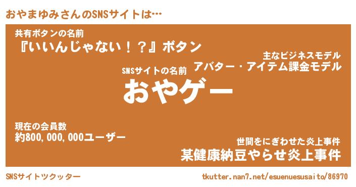 | 肩書あだ名 | 『おやまゆみ社長』『おやまゆみ総理大臣』 |