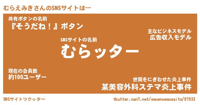 | 男性向けラノベタイトル風あだ名 | 『ムラエミキアートオンライン』 |