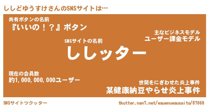 | 胡散臭い通販商品みたいなあだ名 | 『億万長者になれる水晶球…その名も「ししどゆうすけ」』 |