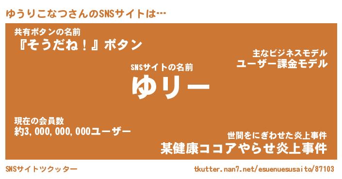 | 肩書あだ名 | 『ゆうりこなつ社長』『ゆうりこなつ班長』 |