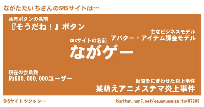 | 肩書あだ名 | 『ながたたいち店長』『ながたたいち団長』 |