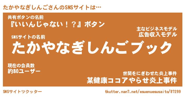 | 肩書あだ名 | 『たかやなぎしんご社長』 |