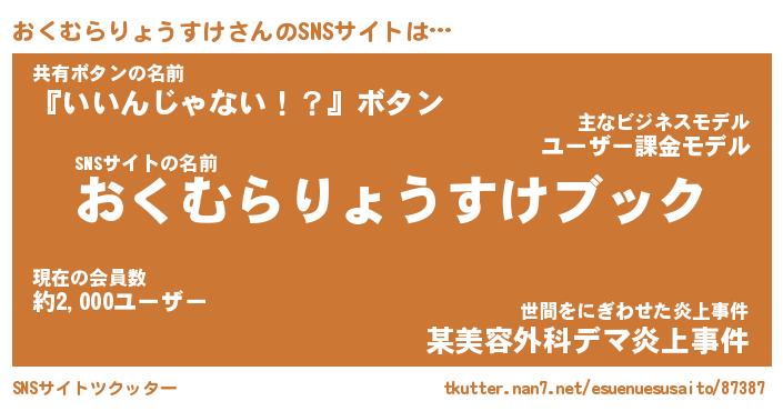| 男性向けラノベタイトル風あだ名 | 『オクムラリョウスケアートオンライン』 |