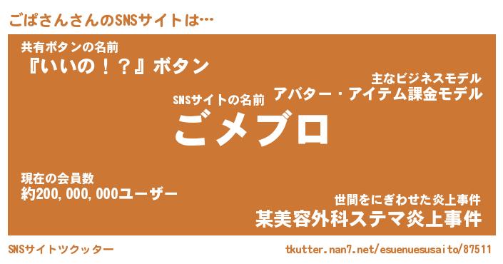 | 意味不明あだ名 | 『ペロリンごぱさん』『永久保存ごぱさん』 |