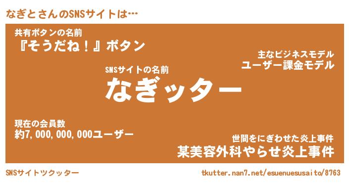 | 欧米人風あだ名 | 『マイケルなぎと』『なぎとクリステル』 |