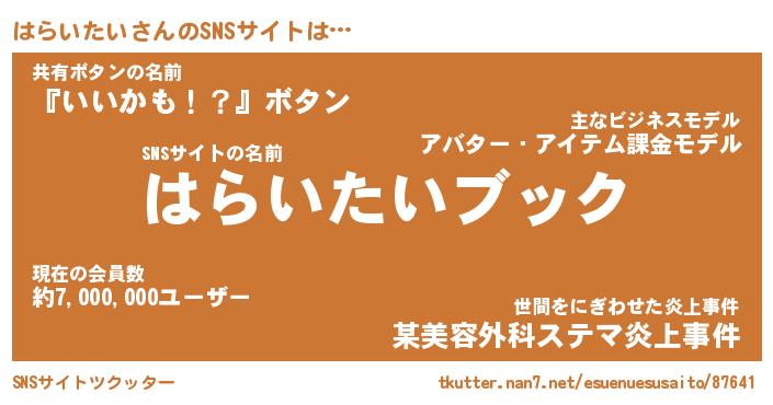 | 男性向けラノベタイトル風あだ名 | 『ハライタイアートオンライン』 |
