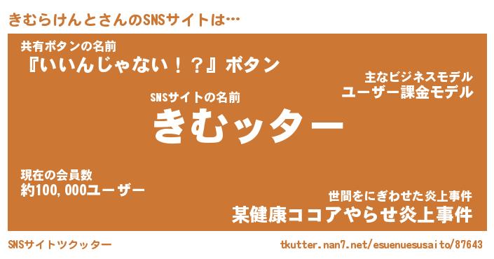 | 女子向けラノベタイトル風あだ名 | 『誰かこのきむらけんとを説明してください! ~契約から始まるウェディング~』 |